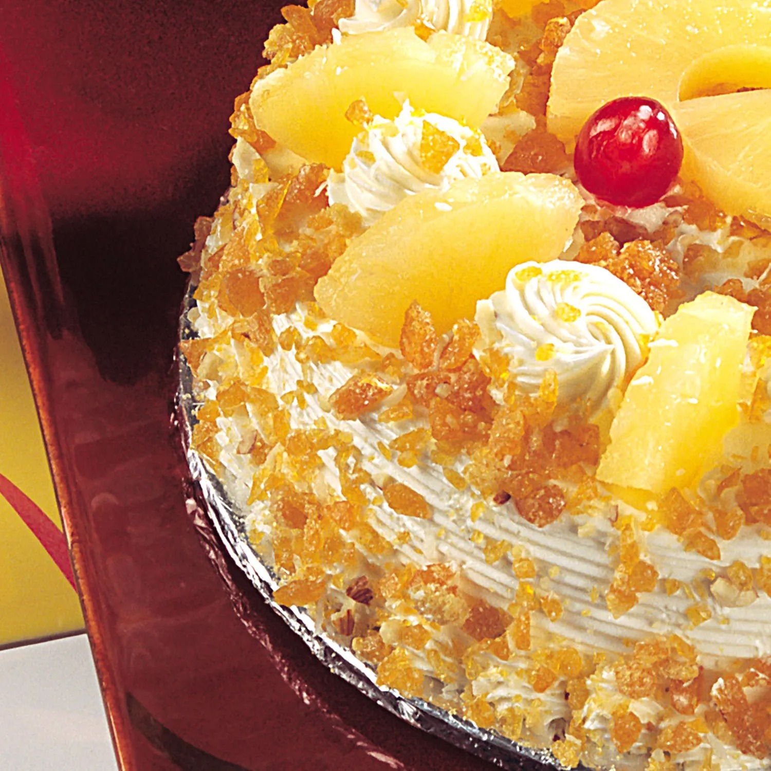 Product Details: Cake Flavour- Pineapple With Butterscotch Type of Cake- Cream Weight- Half Kg Shape- Round Serves- 4-6 People Size- 6 inches in Diameter Country of Origin: India