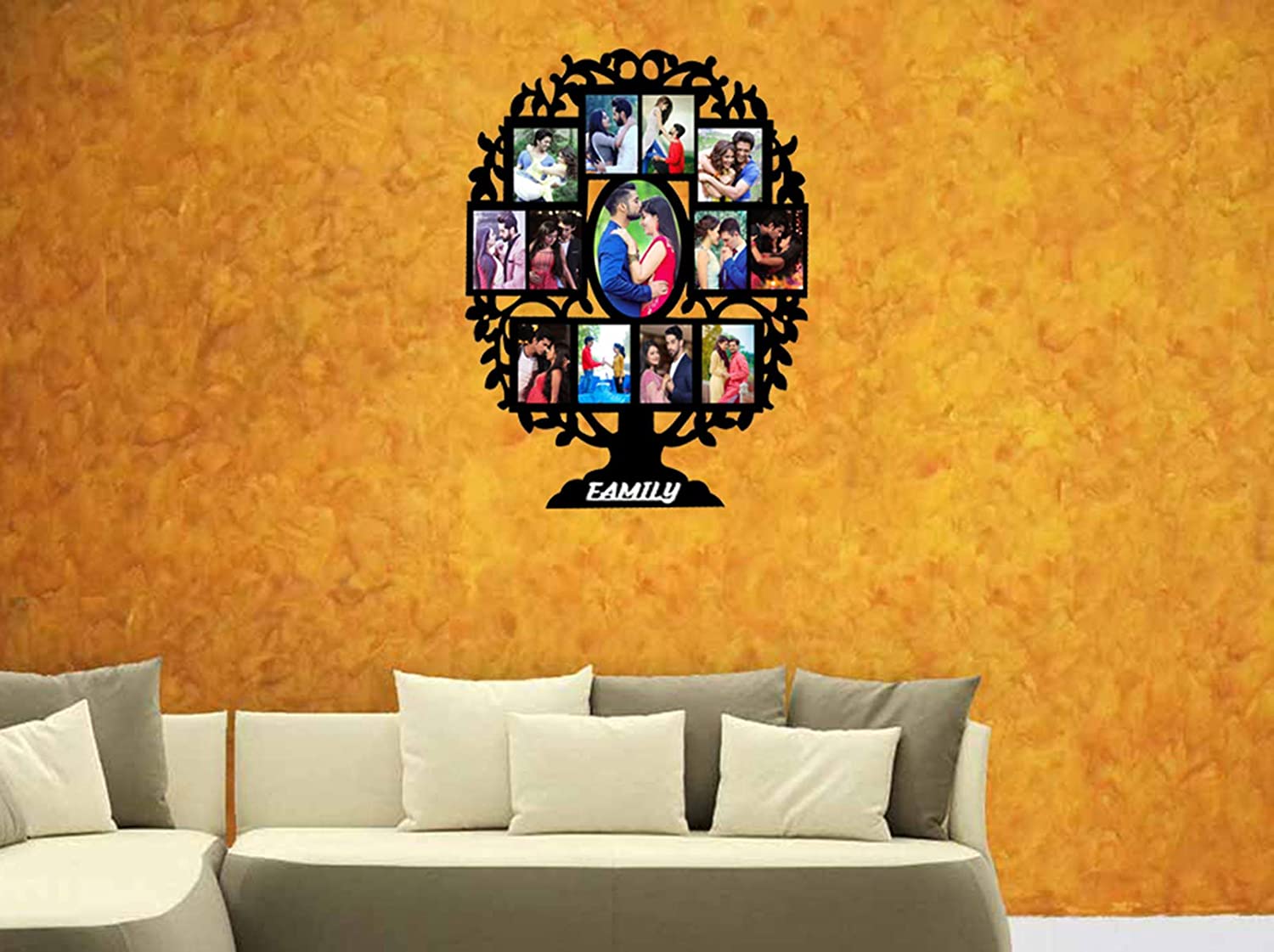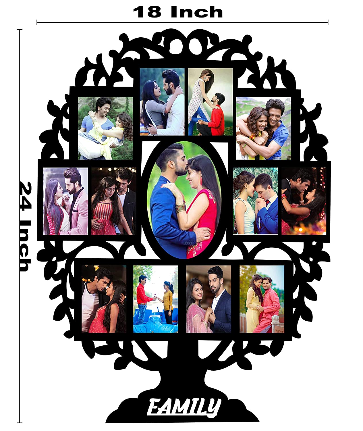 HANDICRAFTS Family Tree Personalized/Personalise 13 Photo Frame for Gifts in Creative Wooden Frame |Gifting Frame for All Occasions| (Black, 18x24 inches)