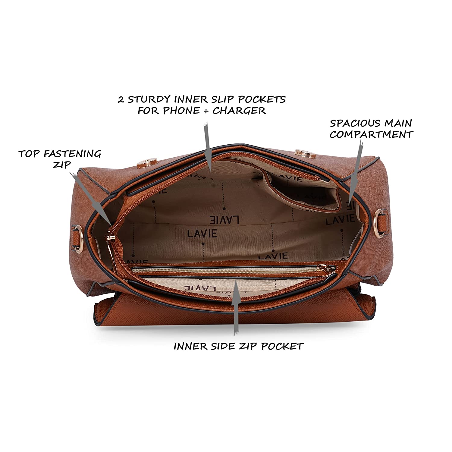 Beech hand bag has a top zip closure for safety and security. The interior has 1 main compartment, divided by an inner zip storage, 2 slip pockets alongside 1 external zip pocket, providing plenty of storage space for keeping phone, portable charger, keys, hairbrush, wallet, sunglasses, sanitizer etc. It also has a detachable and adjustable sling belt for multipurpose use.
