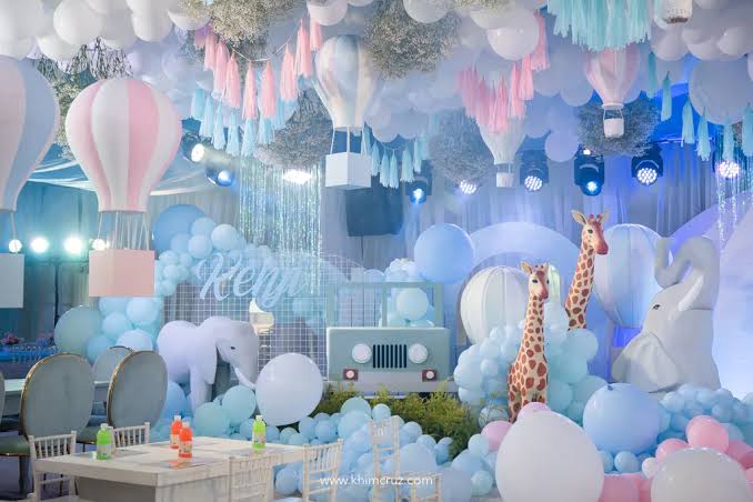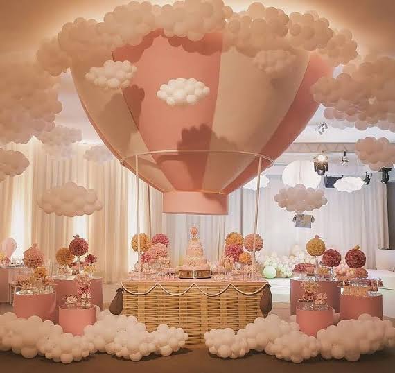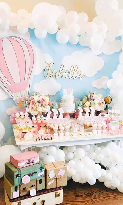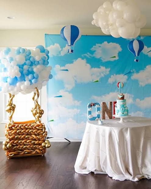 Go up, up and away with a hot air balloon birthday theme! Absolutely precious in every way, this celebration is full of vintage-inspired decorations and details. A light and lovely decoration scheme and a whimsical hot air balloon photo booth create a fun atmosphere to get carried away with.