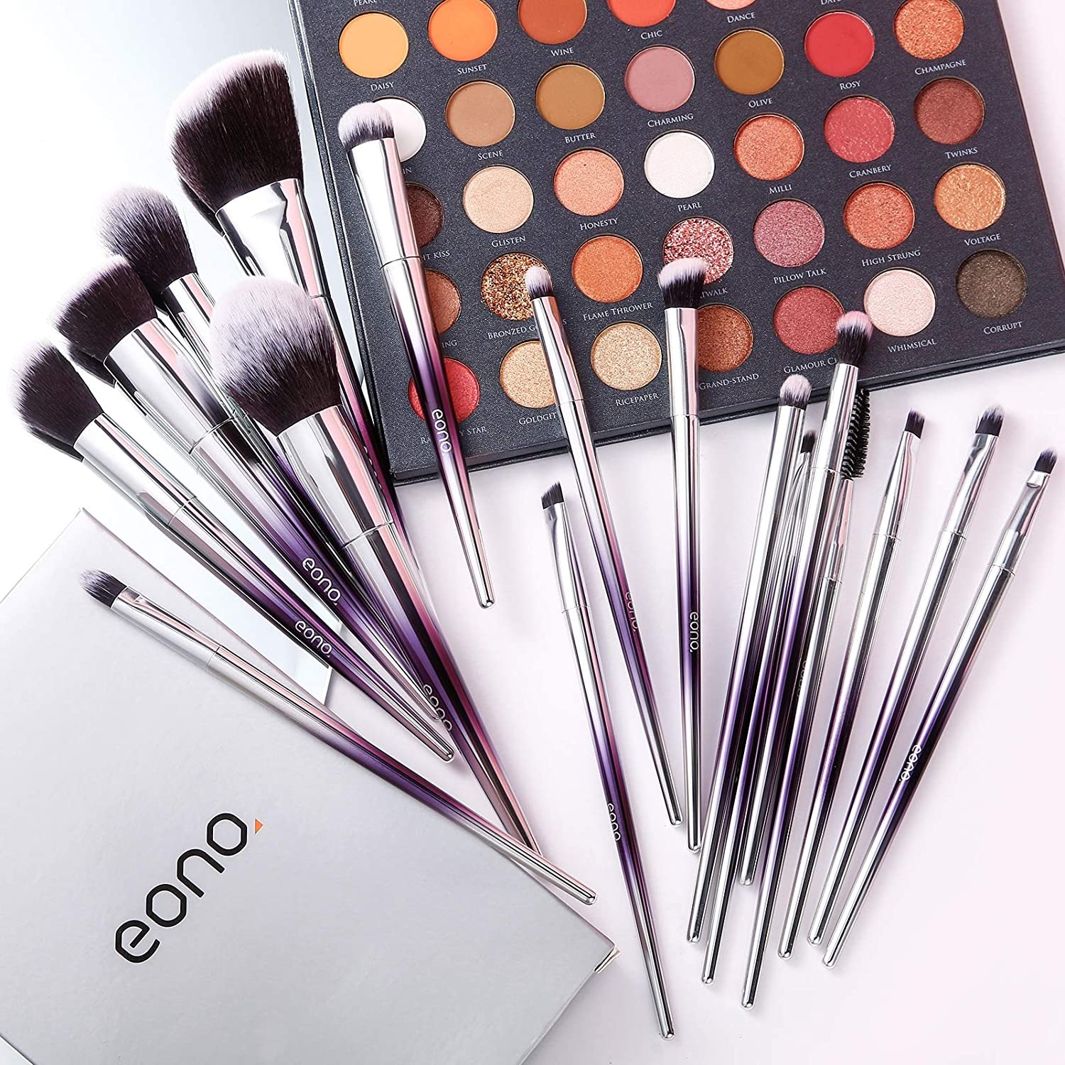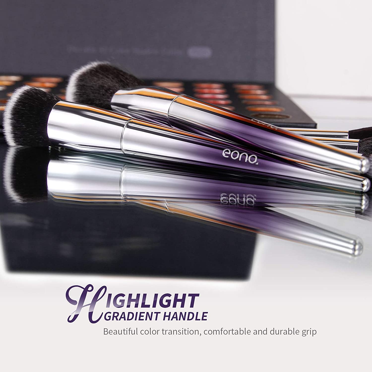 Premium Synthetic Material - Eono Makeup Brush Set is made of Dense synthetic hair(100% cruelty-free ), the hairs are fiber hair and the affinity skin is not irritating. Gradient design in purple colors for an elegant and trendy look.