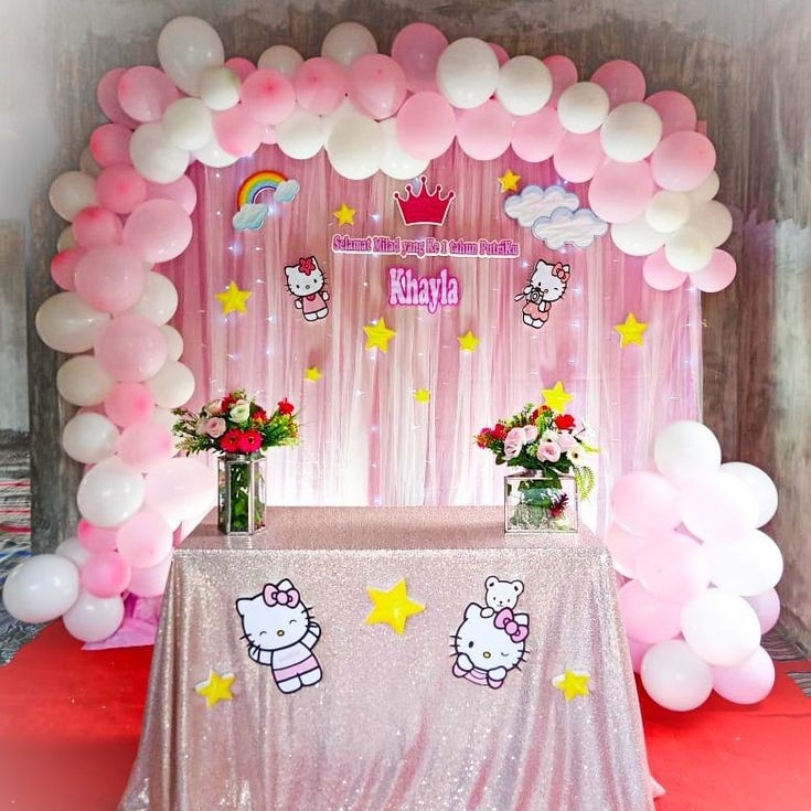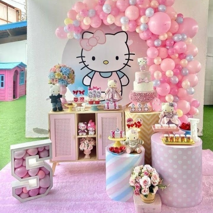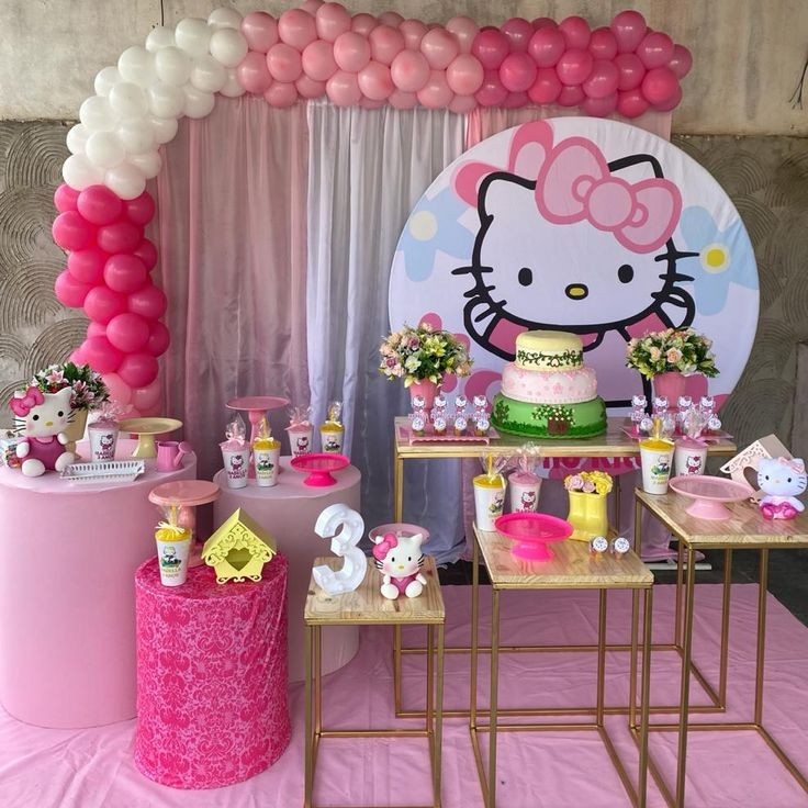 This Hello Kitty birthday party theme is specially for your little princess! Let Kitty White help you celebrate in style with this colorful Hello Kitty birthday Theme featuring a pretty pink background and a rainbow of hearts, stars and flower graphics.